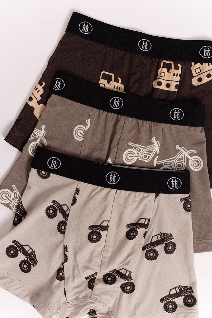 bamboo boxers (3 pack) - dirt bike, bulldozer, & monster truck