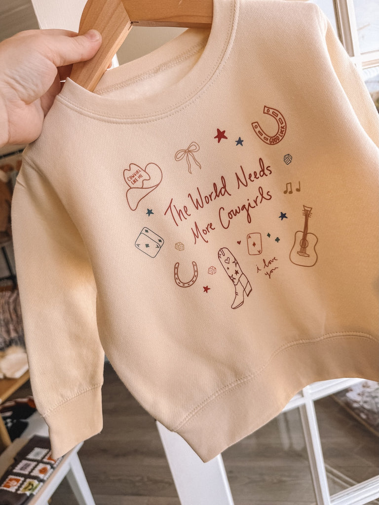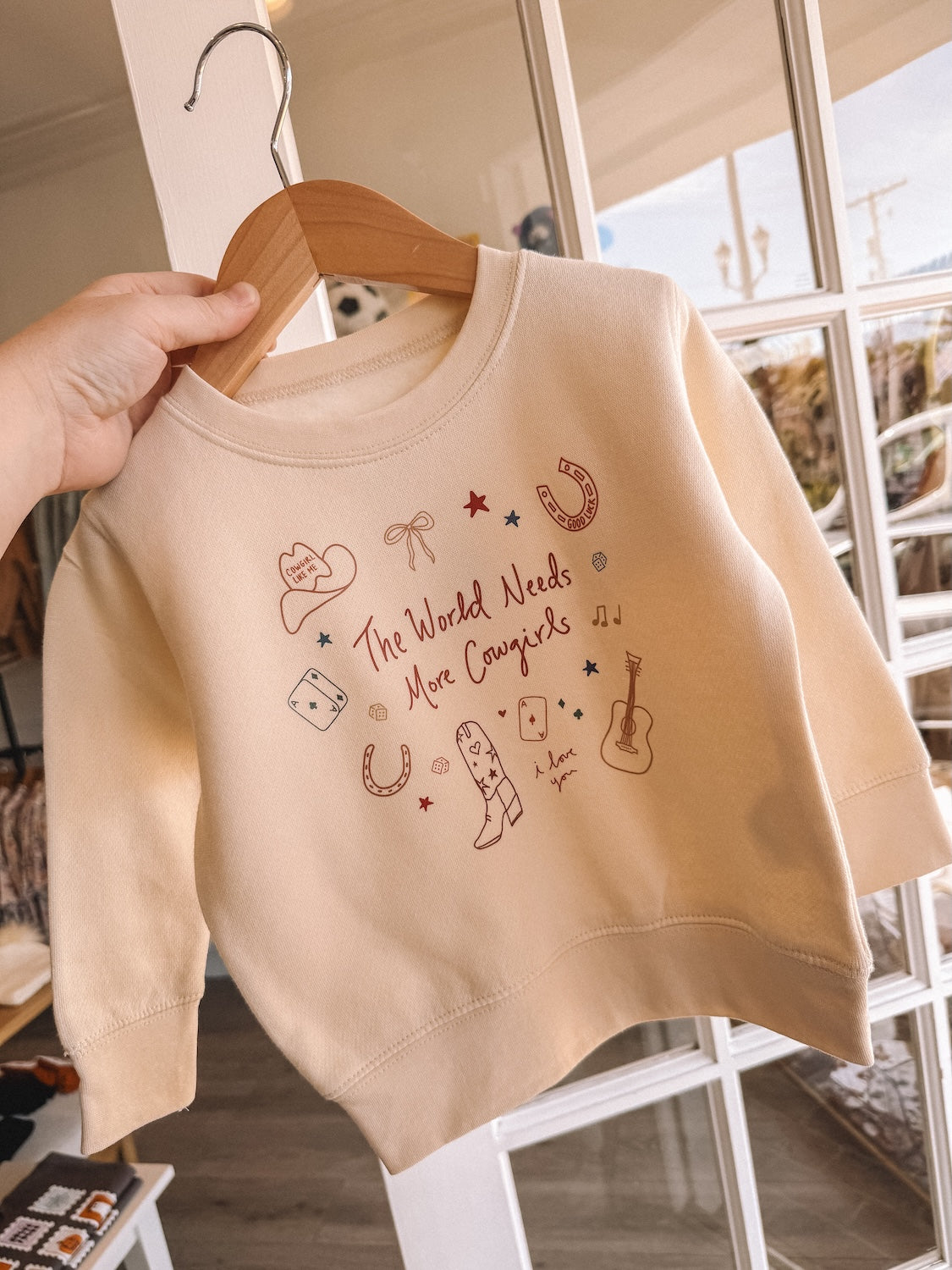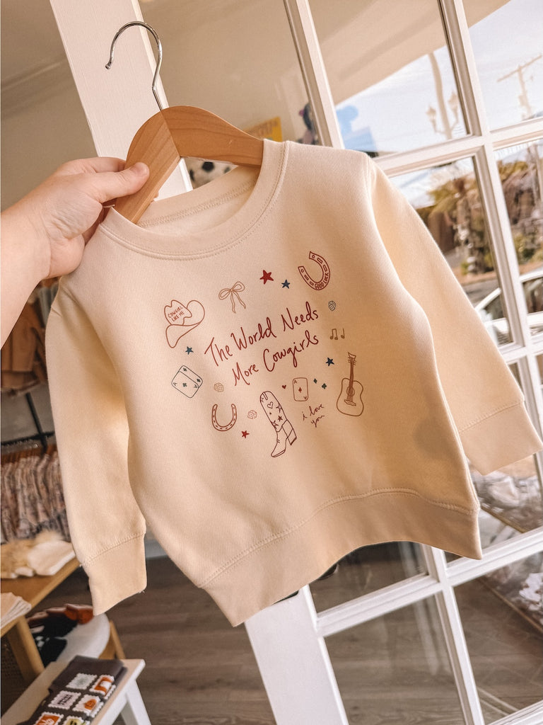 the world needs more cowgirls crewneck - 2T is backordered and will ship as soon as it is back in stock.