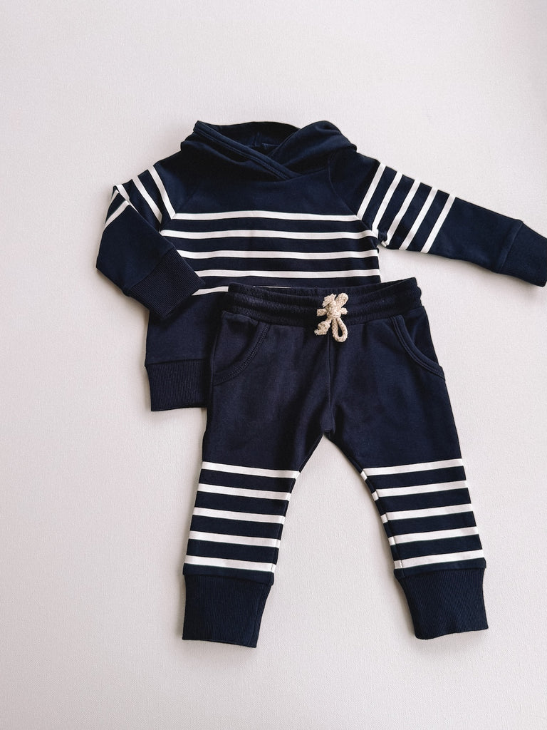 navy stripes hooded set