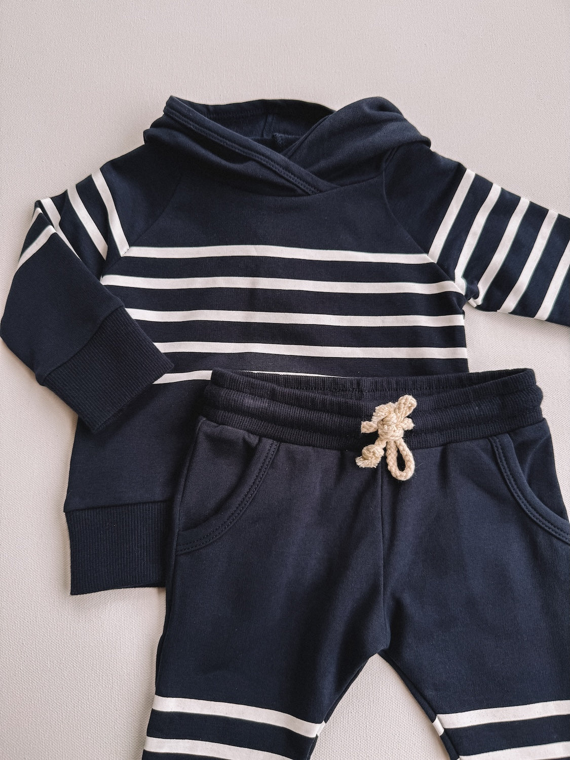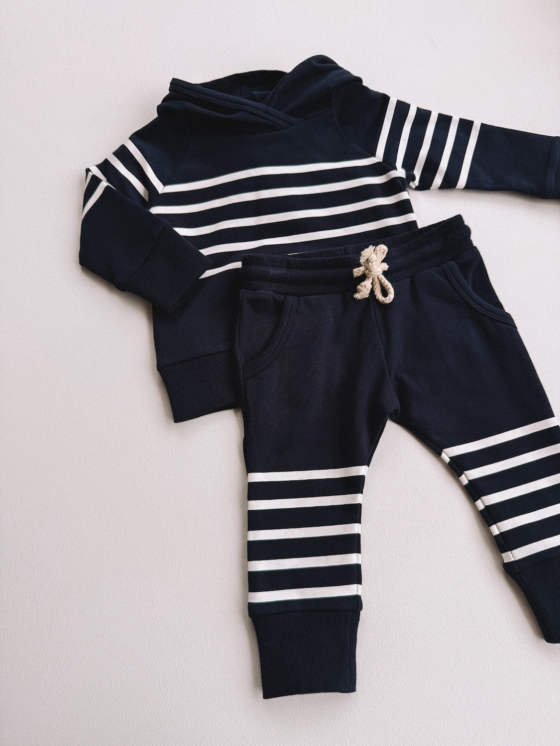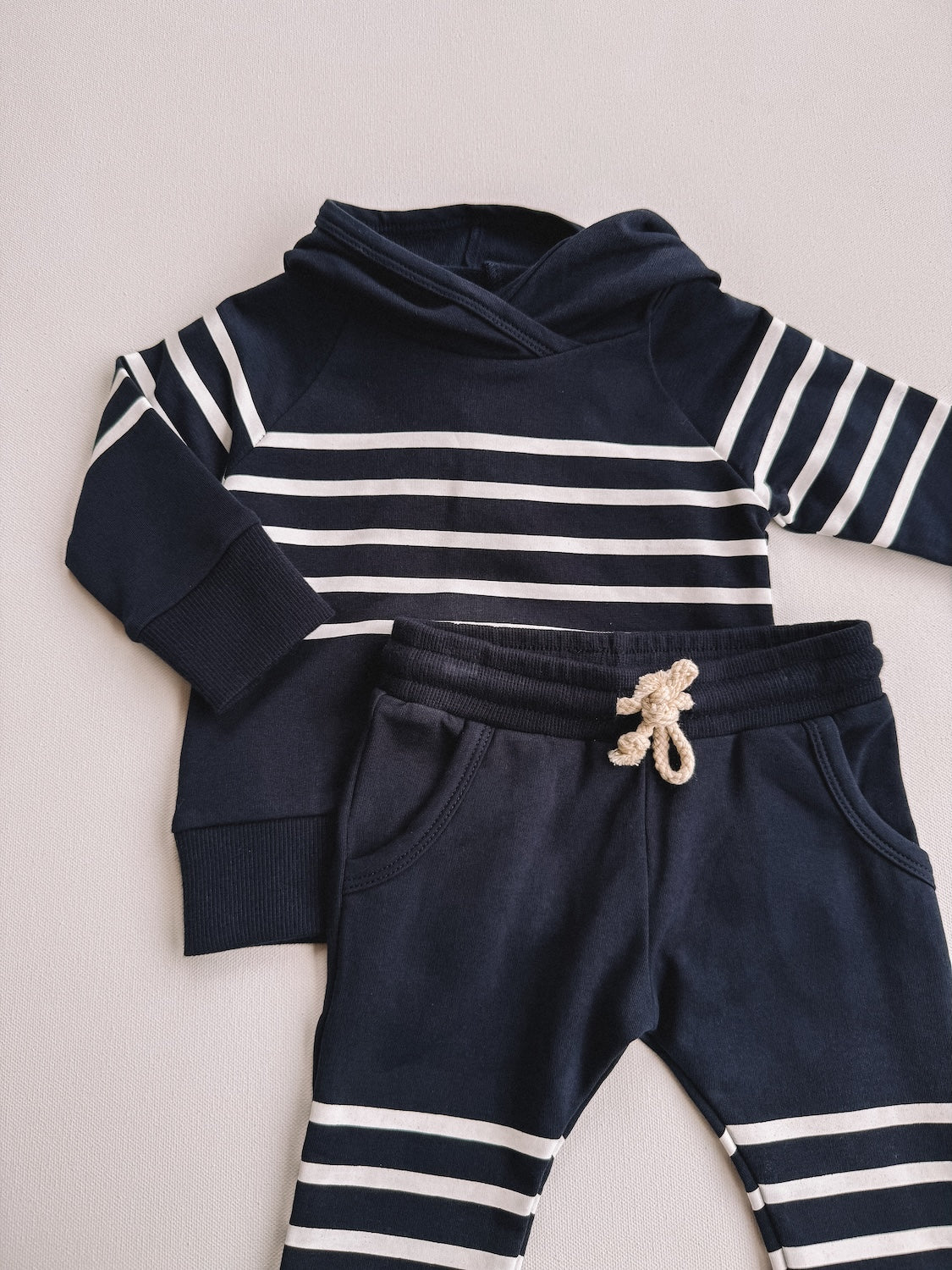navy stripes hooded set