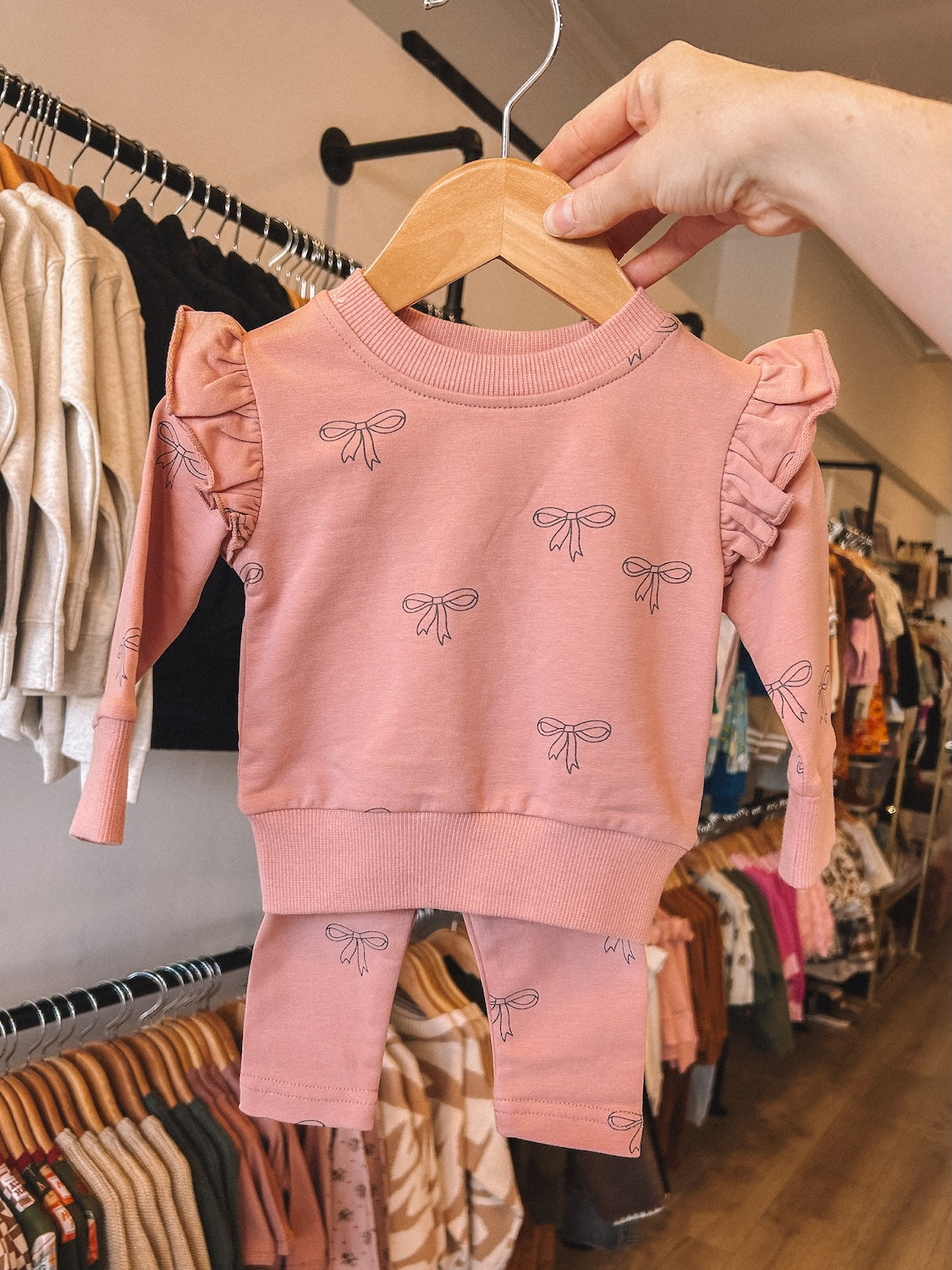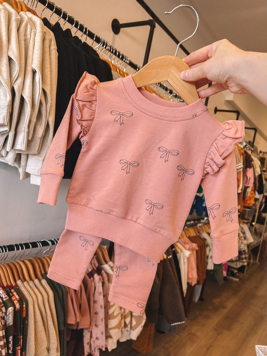 pink ribbon ruffle french terry set