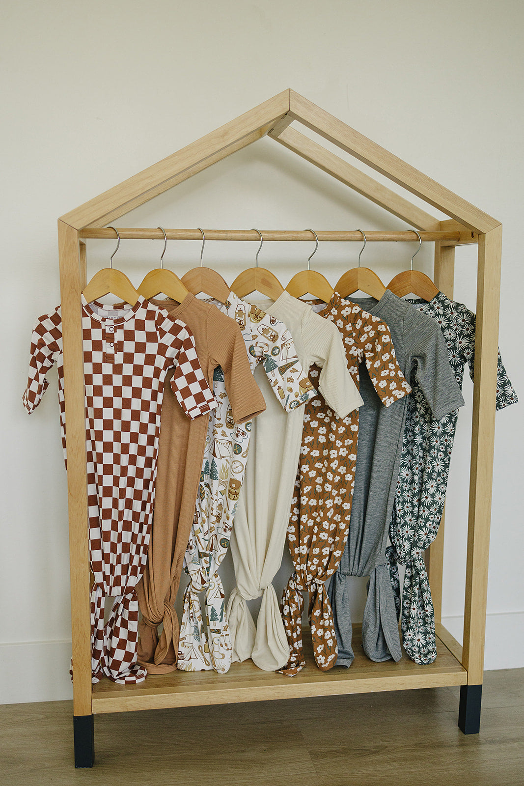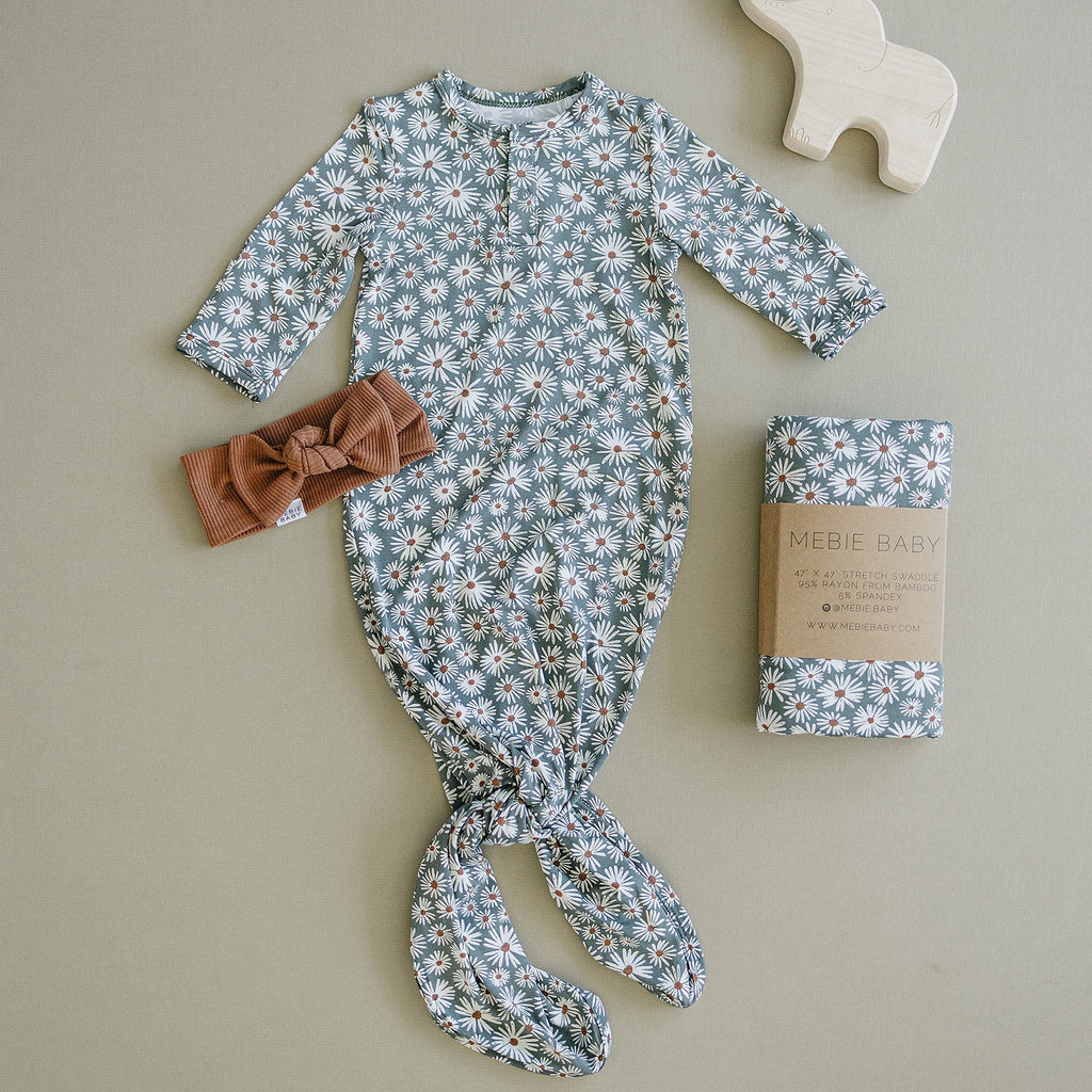 These gowns are size 0-3. They are made out of supremely soft Bamboo Rayon to keep your little one comfortable. We have a variety of gender neutral designs and colors making them perfect for any baby. They have fold over hands and two snaps for easy on and off. We also have shoulder flaps to make it easily pull over your little ones head, we want to make dressing your baby as easy as possible. The bottom is easily tied and untied in a knot for no-fuss diaper changes which makes it a newborn baby essential!