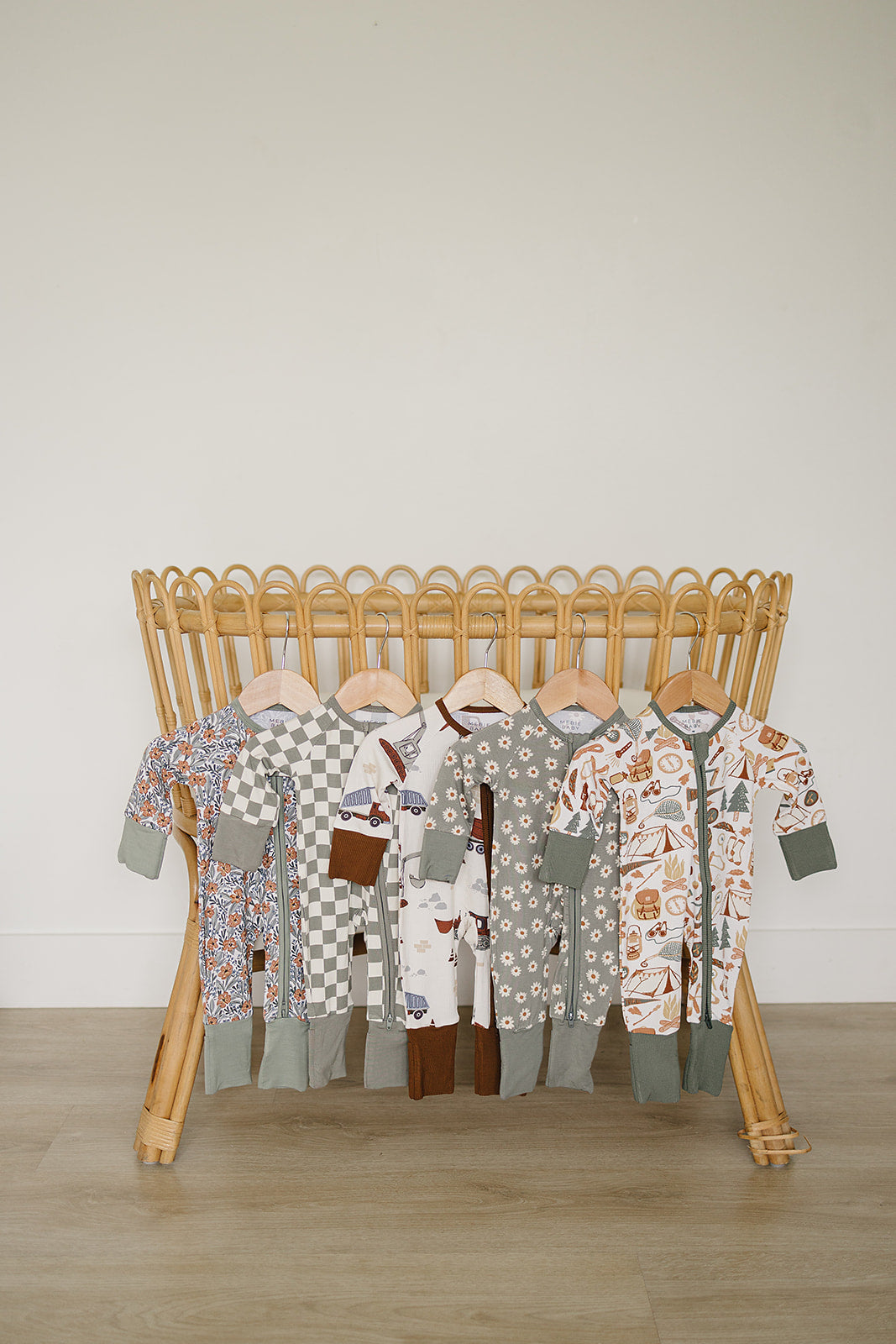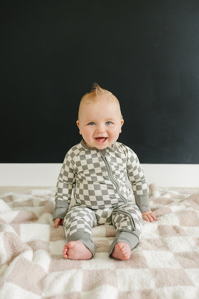 light green checkered bamboo zipper - NB is backordered and will ship as soon as it is back in stock.